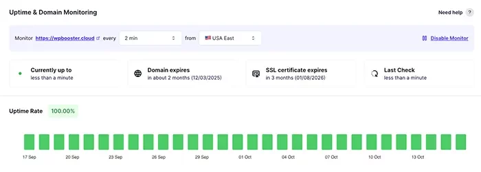 My WordPress management system monitors your website and domain for uptime, performance and critical errors — 24/7. If a problem occurs, I’m alerted right away.